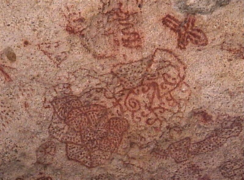 Red-stained designs and symbols inscribed on the limestone, said to have been the handiwork of the Arawak Indians when they inhabitedRead more