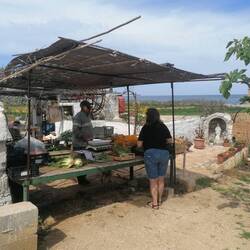 Ein kurzer Abstecher, einen Latte Macciato in einem der netten Lokale, Agathe kauft im klostereigenen "Laden" Gemüse und Salat und die Reise geht weiter.