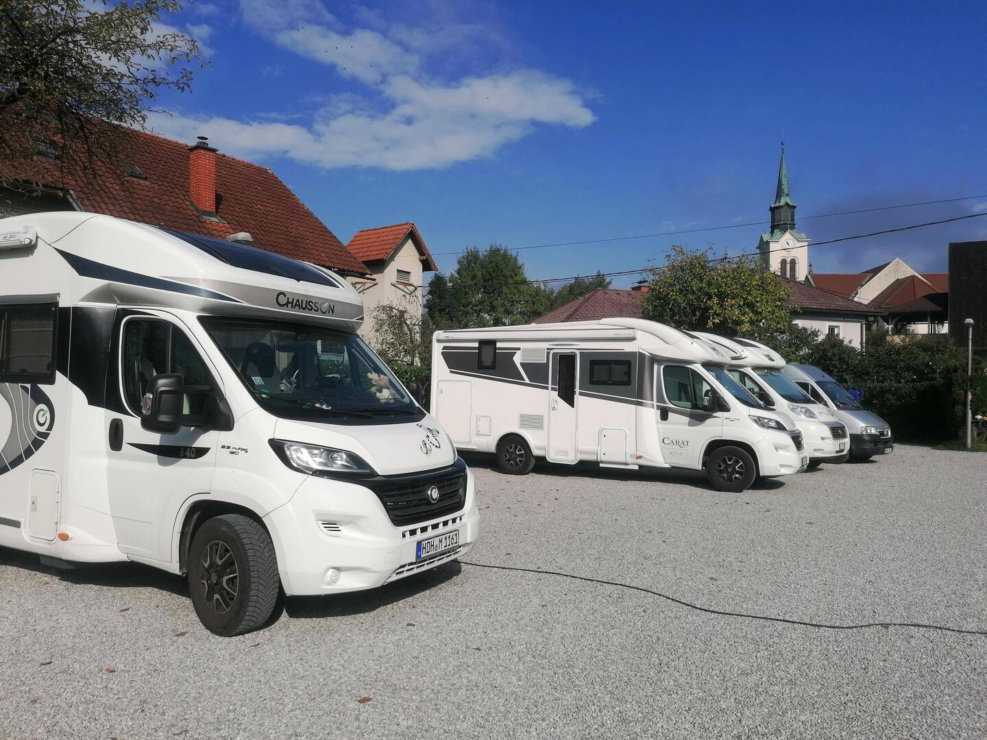 In einem kleinen Wohngebiet, ca. 8 km vom Centrum Ljubljana entfernt, hatten wir uns im Vorfeld aus einer App diesen Platz (ohne Angaben von Gebühren) ausgesucht.