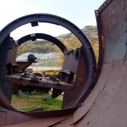 Rambling North AmericaRambling BearsShow tripAdd to bucket listRemove from bucket listShareDay 66Saturday, September 30, 2017 🌬 16 °C Altitude: 685 m CanadaMichichi Creek51.461782, -112.7245751°27’42” N 112°43’28” WEntering Drumhellar September 30, 2017 in Canada ⋅ 🌬 16 °C On the way into Drumhellar we briefly visited the Alas Coal Mine. 0 likes Show trip