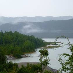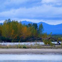 Rainy day in downtown Talkeetna. When planning the journey I chose for us to stay here because it is a tiny country town surrounded by lots of forest and river walks. On a clear day down by theLue lisää