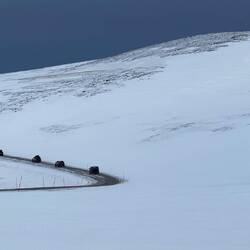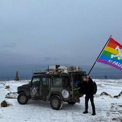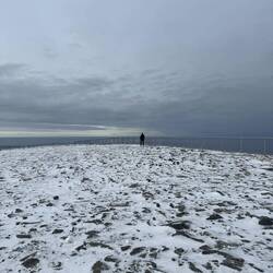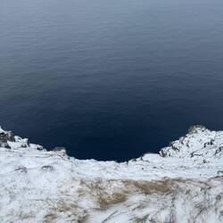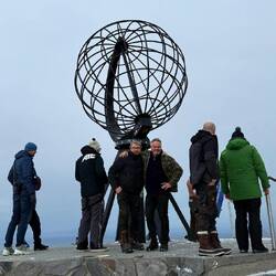 Dem Konvoi zur berühmten Kugel fahren wir mit kleinem Abstand hinterher... aus Gründen. Natürlich weil wir immerzu anhalten müssen um Fotos zu machen und die Ausblicke zu genießen. Das Cap ist grandios. Zum Glück spielt das Wetter mit, es ist ungemütlich, sogar etwas kalt. Das Meer, unversperrt nach Norden, ist stahlgrau, die Felsen schroff. Sehr eindrucksvoll. Der Blick nach Süden offenbart allerdings einen Riesen Parkplatz mit touristischer Infrastruktur samt Toilette für 10€.Læs mere