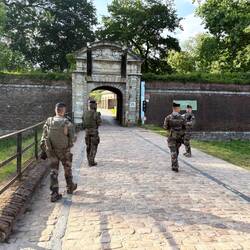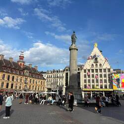 Kurzer Spaziergang zur Porte de Paris und zum Hôtel de Ville mit Belfried. Dieser gehört zum UNESCO Weltkulturerbe. Leider erst ab 10.00 Uhr geöffnet. Wir wundern uns über die leeren Straßen inLeer más