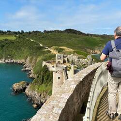 Wir starten früh, um pünktlich um zehn am Parkplatz von Fort La Latte zu sein, einer Burg aus dem zehnten Jahrhundert am Cap Fréhel. Schon der erste Blick begeistert, auch wenn es sich nach derLeer más