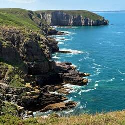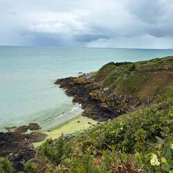 Direkt von Fort la Latte starten wir auf den GR 34, ein Fernwanderweg entlang der bretonischen Küste. Es sind eine Menge Leute unterwegs, besonders als wir uns Cap Fréhel nähern. Zwischendurch gibtLeer más