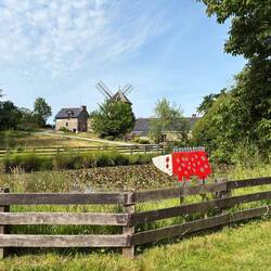 Wir starten den Tag mit einem Spaziergang auf den Mont Dol. In den Felsen hängen die ersten Kletterer. Wir bevorzugen den Fußweg 😁. Oben werden wir belohnt mit einer historischen Mühle und einerLeer más