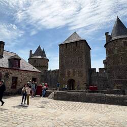 Die anderen drei Stopps waren alle sehr kurz also nehmen wir doch noch Fougères mit ins Programm, was berühmt ist, für seine Festungsmauern. Wir laufen die in der Tourist Info empfohlene Runde. AufLeer más