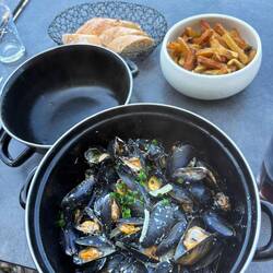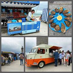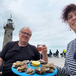 Weiter geht es in die bretonische Austernhauptstadt nach Cancale. Vom Brunnen der Austernwäscherinnen bummeln wir zum Hafen und gönnen uns eine Platte mit 12 Austern, 6 Plates und 6 Creuses dazu einLeer más
