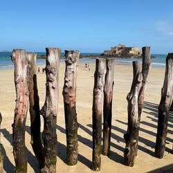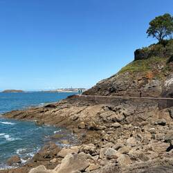 Direkt gegenüber von St. Malo am Zufluss der Rance liegt Dinard, ebenfalls Festungsstadt, aber charmanter und mit sehr viel Villen und Herrenhäusern. Wir laufen einmal den Küstenweg und genießenLeer más