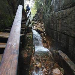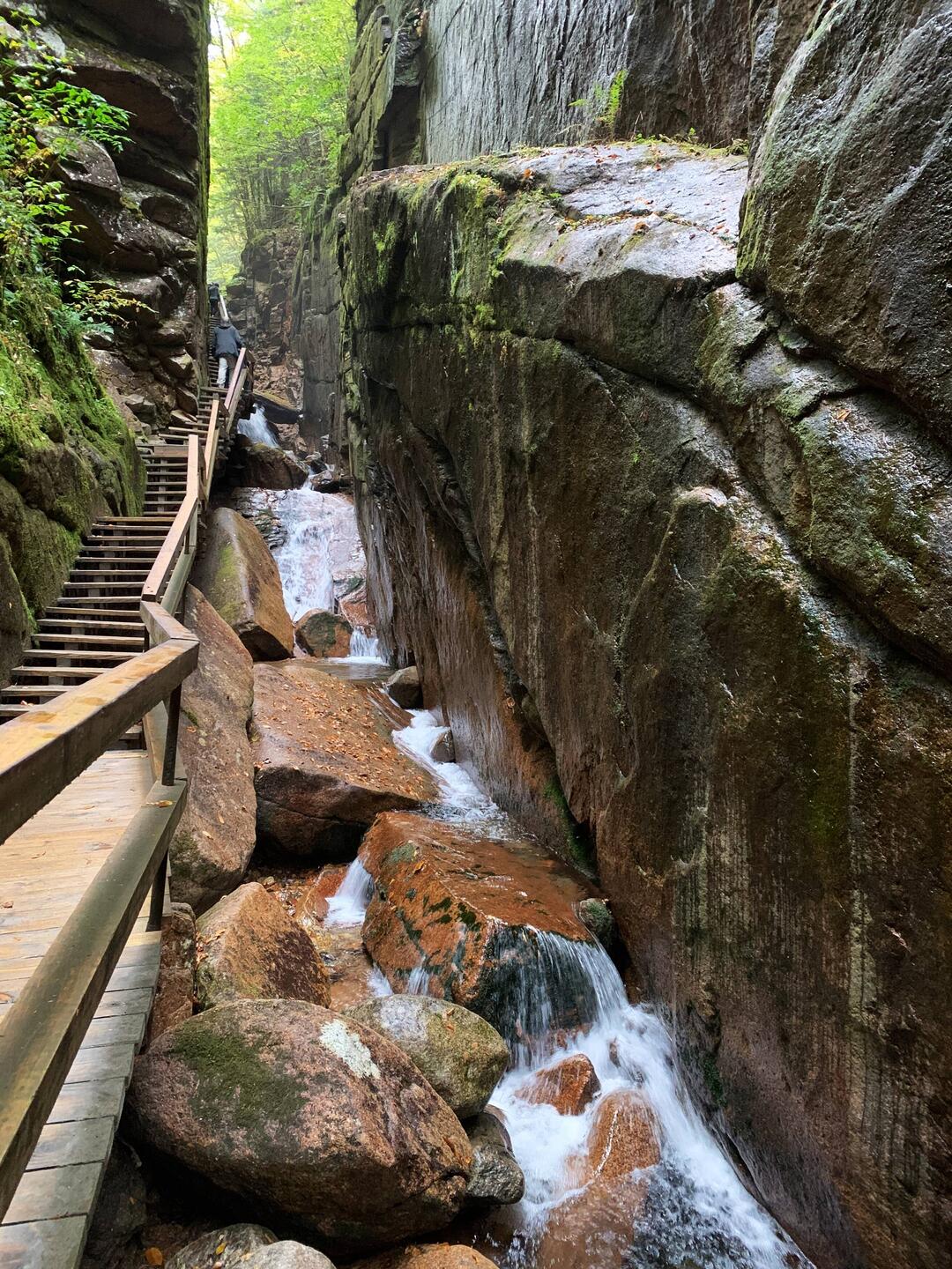 Die zweite Wanderung des Tages führt uns durch die Flume Gorge und begeistert uns sehr. Die Wasserfälle, Pools, Felsen und Höhlen sind klasse.