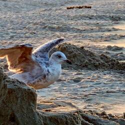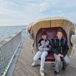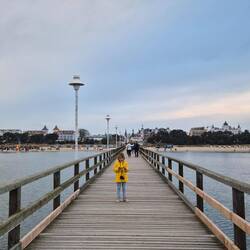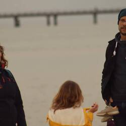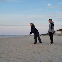 Ein letztes Mal geht es abends an den Strand. René, Sven und Jasmin erobern die Seebrücke, spielen Frisbee und setzen sich der stürmischen See aus. Schön war's.