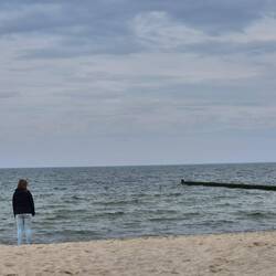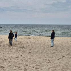 Strandwanderung entlang der Steilküste von Bansin. Jasmin sammelt fleißig Steine, Muscheln gibt es leider eher wenige.