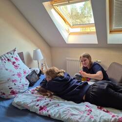 Ohne Stau gut durchgekommen. An der Ferienwohnung angekommen fehlt der Schlüssel im Kasten. Ein Nachbar hilft und lässt uns rein. Sehr schönes geräumiges Haus, gemütlich mit 3 Schlafzimmern. NunRead more
