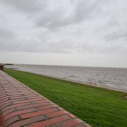 Als wir in Wilhelmshaven ankamen, hatten wir bestes nordisches Wetter: Sonnenschein, aber dazu eine ordentliche steife Brise. Also schnell einen Parkplatz gesucht – und los ging’s!