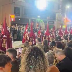 Vi var inde i byen for, at se deres store påskeoptog. Turen startede kl. 21.00 med et knald på nattehimmelen og skulle så først slutte kl 03.00. Processionen startede den 11. april og slutterLeggi altro