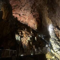 Grotten har en enorm hovedhal, der er 107 meter lang, 65Læs mere