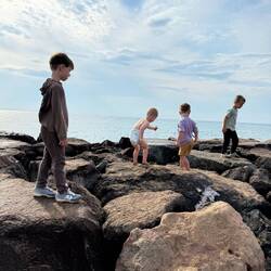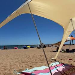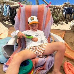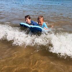 Am Montag Strandtag am Plage Agulf. An dem Strand sind so kleine Buchten angelegt und es geht lange flach ins Wasser rein. Perfekt für die Kinder und zum Wellenreiten!