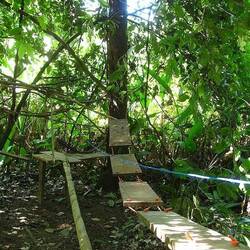 Op de dag waren we druk...in korte tijd moesten de dorms afgebouwd worden en moest de storage voor de rugzakken klaar. Samen met George heb ik de storage gebouwd van jungle hout...zwaar werk want het hout valt moeilijk te bewerken...zagen met de motorzaag...en spijkers moet je eerst in de olie leggen en vervolgens met een tang vasthouden om ze er in te kunnen slaan. Kapotte handen en blaren....maar het is klaar!