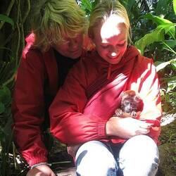 Heleen is deze week ook moeder geworden van een zeer klein brulaapje van iets meer dan 600 gr welke binnen werd gebracht met abcessen in haar nek en aan haar beentjes...en was zeer ondervoed. Om de dag heft ze moederdienst en is ze de hele dag met haar bezig. De andere dag neemt Eva het over en is Heleen druk met voeden en verzorgen van alle andere dieren, 36 papegaaien, capucijner apen, eekhoornaapje, nachtaapje, schildpadden, neusbeertje, Braziliaanse wilde kat en een baby jungle zwijntje....ze vind het fantastisch!! Eva en Bram zijn Belgen en werken beide ook in de quarantaine en zijn inmiddels onze maatjes geworden. Het zijn geen uitgaanstypes en samen brengen we de avonden door op het kamp....en verzorgen we de warme kruikjes voor de aapjes....en het is lekker rustig als iedereen weg is! Helaas werd de rust wel verstoord afgelopen vrijdag door een possum welke in de kooi van de toucans geslopen was en een toucan gebeten had. We waren tot laat in de nacht bezig om hem....en later nog drie anderen....te vangen. Voor de zekerheid hadden we de toucans een nacht verhuisd naar de clinic om de volgende dag eerst het lek in de kooi te zoeken. Met Bram ben ik tevens bezig om een Walibi park te bouwen...en speelpark voor de aapjes van quarantaine ergens onderweg in de jungle op de dagelijkse wandelroute. Ik he been mooie bamboe loopbrug gemaakt en andere leuke speeltuigen. We hopen het park deze week af te krijgen.