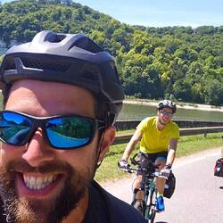 A peine lancés, pause ! Il faut faire la photo des 7000km ! Victor va devoir se faire au rythme. On repart... Et oh ! Un café ! Pause ! Mouahahah c'est le moment du traditionnel TimeGuessr 😁