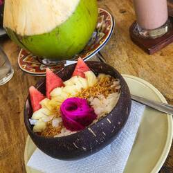 Den zweiten Tag wollten wir für uns selber Planen und haben uns nur zwei Roller gemietet. Es war ein super gelungener Tag. Leckeres Frühstück und ab zum Diamond Beach direkt daneben hatten wir auch Sicht auf Atuh Cliff. Auch zum Beach sind wir runter gegangen, was mal wieder Steiler und länger gedauert hat als gedacht aber dieses mal mit Schatten. Die Aussicht war mega, der Strand super schön und die Wellen haben Spaß gemacht. Hendrik und ich sind ins Wasser und haben etwas rumgealbert. Mit Vorsicht natürlich, denn auch hier waren die Wellen hoch und sehr stark. Einmal wurden wir ziemlich weggezogen, haben aber auch viel Spaß gehabt. Rumah Pohon "Tree House", war ein Punkt wo ich wirklich gerne ein Foto machen wollte. Es sah einfach super schön aus mit einem Kleid an dem Baumhaus mit dem Blick aufs Wasser. Dort angekommen, mussten wir natürlich erst einmal Eintritt zahlen und für den Parkplatz auch. Immerhin haben wir eine kleine Wasserflasche dazubekommen, was ich Verpflichtend finde bei den Temperaturen. Es gab ein bisschen was anderes zu sehen und wir hatten einen super schönen Ausblick. Mein Foto am Baumhaus hat sich für mich dann auch erledigt. Sie wollten natürlich auch Geld dafür haben, da ich mittlerweile mehr als genug Fotos habe, habe ich mich dagegen entschieden. Also sind wir auch relativ schnell wieder weiter gefahren, selbst die Fahrt durch Nusa Penida war unglaublich schön Wir sind an ein paar "Teletubbies Hill" vorbeigekommen. Wie die entstanden sind, keine Ahnung aber es sieht zumindest wirklich nach den Teletubbie Hügeln aus. Der Tag ging auch wieder schneller zu Ende als gewünscht und unser letzter Stopp war "The Manta Point". Wir haben ein Tor gefunden, was genau so aussieht wie das große Tor, wo ich 4 Stunden hätte warten müssen. Nur dort war keiner und es gab eine super super schöne Aussicht. Wir haben die letzten Sonnenstrahlen nochmal genossen, sind dann aber auch zum Restaurant gefahren und haben eine kleine Massage gegönnt. Der letzte Tag auf Nusa war wirklich nicht ganz so schön, Wir haben uns sehr auf die Schnorcheltour gefreut, haben gehofft, dass es so ähnlich wie in Amed wird. Als wir am Hafen angekommen sind, haben schon ein paar andere Menschen warten sehen. Das Boot war komplett voll, was hieß es waren 14 Leute. Wir sind sofort zum Ort gefahren wo es möglich ist Mantas zu sehen. Und als wir angekommen sind, ging der Stress los. Es waren noch einige andere Boote Vorort, alle haben rum geschrien und nach Ausschau gehalten. Dann schreit unser Fahrer, "springt rechts rum da ist einer, los los los!" Ich bin rein ins Wasser und habe auch meinen Manta kurz gesehen, dieser Moment war traumhaft. Eine Schildkröte war direkt unter dem Manta. (sieht man unten recht im Video noch etwas es war super windig, die Strömung sehr stark, kaum Sonne. Ich habe hochgeschaut und nicht einmal mein Boot gefunden. Bis ich Hendrik im Wasser entdeckt habe und kurze zeit später dann auch unser Boot. Dann ging es wieder aufs Boot und das ganze ging von vorne los. Dieses mal ist Naomi mit ins Wasser, sie hat es versucht und dann hat es nicht mehr funktioniert. Sie wollte einfach zurück aufs Boot, es war ihr alles zu unsicher und war kurz davor in Panik auszubrechen. Ich habe ihr geholfen und sie gezogen, versucht ihr gut zuzureden und auf uns aufmerksam zu machen. Es hat eine Ewigkeit gebraucht bis irgendein Boot gerufen hat um zu fragen, ob wir Hilfe brauchen. "Ne ich winke umsonst mit dem Arm und schleppe meine Freundin ab." Unglaublich....sie ist dann endlich auf einem Boot gewesen aber bis sie auf unserem Boot war, hat es auch noch ziemlich gedauert. Ein absolutes NOGO! Dieser Ort wird auch nicht lange mehr von Mantas bewohnt werden, so wie die mit den Tieren umgehen. Die Leute werden weiter ins Wasser springen, so wie auch ich. Einer ist fast genau auf einen Manta gesprungen... unvorstellbar. Danach ging es weiter, ich hatte einfach schon keine Lust mehr, obwohl ich sagen muss das Riff war unglaublich schön. So viele Farben und so viele Fische. Und auch so viele Menschen. Normalerweise hätten wir 4 Punkte anfahren sollen, die haben die Tour aber nach 3 Beendet. Der letzte Punkt war auch gar nicht mehr gut, Naomi ist dieses mal auch komplett drin geblieben, war auch besser so. Es war so super kalt im Wasser und auch nicht schön. Es hat sich also nicht gelohnt und mir einfach nur klar gemacht, dass es alles um Geld und abzocke geht. Leider... somit haben wir die kleine Insel auch gesehen.Læs mere