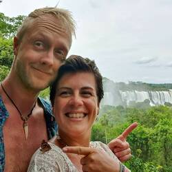Bei diesem heißen und humiden Klima verbindet man auch gerne eine Erkundungstour mit einer Erfrischung. Als wir uns Puerto Iguazú anschauten, ein Städtchen mit Südsee Charme, waren wir auch auf der Suche nach einer Abkühlung. Auf Maps.me war am Fluss ein kleiner Strand eingezeichnet, den wir ansteuerten. Auf dem Weg kamen wir am Dreiländereck vorbei und schauten auf Paraguay und Brasilien. Aus irgendeinem Grund fasziniert mich immer so eine Nähe von Ländern. Einerseits völlig unterschiedliche Kulturen, andererseits sind wir uns doch eigentlich so nah. Nach etwas Kletterei und einem Weg, der sich wie ein Geheimtipp anfühlte, kamen wir am Fluss an und fanden sogar einen kleinen Strand vor. Der Fluss war im Gegensatz zum Pool eine herrliche Abkühlung und wir sprangen nackig rein - was für ein Leben. Damit uns der Boden unter den Füßen nicht völlig entglitt, dachte sich der Himmel etwas dunkler zu werden und sich wie aus Eimern über uns zu ergießen. Innerhalb von Minuten änderte sich das Wetter und wir wurden bis auf die Schlüppi nass, aber liefen glücklich im Regen zum Hostel zurück. Dieses war wieder einmal eins mit toller Atmosphäre und lieben Menschen. Wir lernten Locals aus Buenos Aires kennen und verbrachten lustige Abende miteinander. Uns wurde dadurch auch wieder bewusst, wie das wohl wirken muss, wenn die Argentinier von ihren spärlichen 2 Wochen Jahresurlaub ein paar Tage wo anders verbringen und daneben die Europäer von ihren Monate langen Reisen berichten. Kann man nur immer wieder jeden Tag dankbar sein!