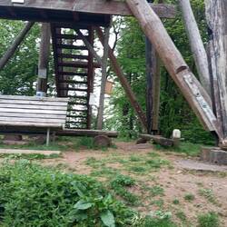 Der Turm an der Tillyschanze hatte noch zu also direkt hinab zum Weserstein. Der direkte Weg ist gesperrt weil die Hängebrücke kaputt istLæs mere