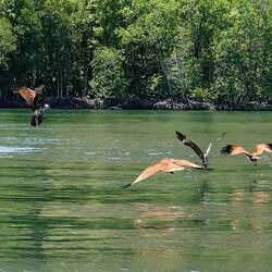 As we made our way on the river that is surrounded by mangroves, we turned a corner and were greeted with an extremely large flock of eagles.