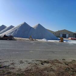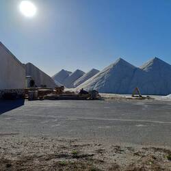 Einige Flamingos stehen in den seichten Becken und Möwen veranstalten ihr übliches Geschrei. Am Produktionsgebäude kann man die großen Salzhäufen sehen, direkt daneben gibt es ein Restaurant. Der Geruch ist hier nicht sehr angenehm, ich könnte nicht sagen ob es aus den Mülleimern oder vom Betriebshof der Saline herkommt. Egal, wir haben ja (wie fast jeden Tag) eingekauft und können unser Abendessen selbst zubereiten.Read more