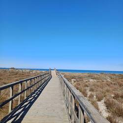 Seit heute Nacht stürmt es, das Womo wackelt und rundherum klappern alle möglichen Dinge im Wind. Ich lasse den Sonnenaufgang heute mal ausfallen. Auch später macht ein Spaziergang höchstens mit Staubmaske und Brille Sinn. Eigentlich wollten wir einen weiteren Tag in La Manga bleiben, nun geht es eben schon heute weiter. Am nördlichen Ende des Mar Menor, bei San Pedro del Pinar gibt es Salinen. Im Moment wird zwar kein Salz produziert, das beginnt frühestens im Mai oder Juni, aber besichtigen kann man die Region ja trotzdem. Auf der Fahrt über La Manga stellen wir fest dass die Stadt ziemlich leer ist, man sieht kaum Passanten und wenn sind es offensichtlich Rentner. Handwerker sind überall zu gange um die Hotels und Appartements für den sommerlichen Ansturm zu rüsten. Die Fahrt geht wieder über kleine Straßen am westlichen Ufer des Mar Menor entlang. In San Pedro machen wir einen Halt bei Carrefour und ich bekomme endlich meinen Staubsauger. Wenn man am Meer unterwegs ist hat man eben ÜBERALL Sand.