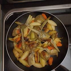 Zurück am Womo probieren wir ein anderes Gericht mit den Artischocken, zusammen mit Knoblauch, Kartoffeln, Möhren und Zitronen erst gekocht und dann in Olivenöl gebraten. Auch sehr lecker. Nach dem Abwasch gibt's noch erntefrische Erdbeeren (die gut schmecken) mit Sahne. Lecker!Weiterlesen