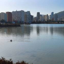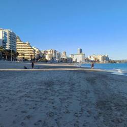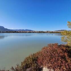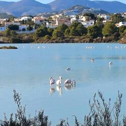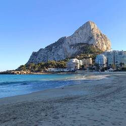 Gestern haben wir von Wasserfällen in den nahen Bergen gelesen, sie liegen ca. 90 km von hier in der passenden Richtung. Leider sind Zufahrtsweg und Parkplätze nicht für größere Fahrzeuge gemacht, wir müssen weiter ohne die Wasserfälle gesehen zu haben. Nicht besser geht es beim nächsten Zielpunkt, einem Wanderweg durch einen Canon. Die Straße ist breit genug für 2 Autos und einen Fußgängerweg aber von der Hauptstraßen bis zur Wendeplatte am Ende des Dorfes sind nur Anliegerparkplätze, kein Wanderparkplatz, keine Haltebucht, nix. Keine Ahnung wie die Wanderer herkommen sollen. Wenigstens war die Fahrt schön, wir fuhren durch Alicante und später wieder durch malerische Berge. Zum Schuß fahren wir bis Calp und finden am ehemaligen Salinensee einen großen Parkplatz auf dem schon ein paar Womos stehen. Achim braucht dringend eine Pause und so gehe ich ein Stück am See entlang und dann runter zum Strand. An der Promenade reiht sich ein Lokal ans andere und dazwischen sind Souveniershops oder Bekleidungsgeschäfte.