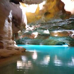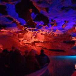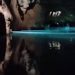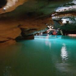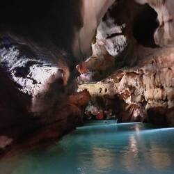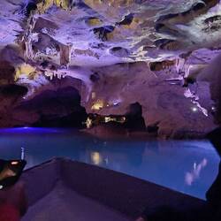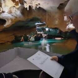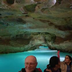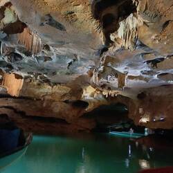 Vom Parkplatz aus sind es nur ein paar Minuten zum Areal der Grotte. Einige kleine Läden und Restaurants flankieren den Weg. Wir kaufen unsere Tickets, müssen noch ca. 30 Minuten warten und dürfen dann eintreten. Zuerst geht es einige Meter durch einen engen Gang, dann erreicht man den unterirdischen Fluss und wird zusammen mit anderen Besuchern in ein Boot gebeten. Diese Boote fassen 12 Personen plus Guide und Bootsführer. Die flachen Nachen werden gestaakt, das Wasser ist meist nicht tiefer als 100 cm. Das erste Stück geht durch enge Kanäle, oft muss mann sich bücken oder den Kopf in die Mitte des Bootes schieben weil die Decke hier nicht sehr hoch ist. Es ist warm und schwül, das Wasser fühlt sich angenehm und gar nicht kalt an. Der Guide erzählt dass man die Höhle in Gruppen auch mit Kajaks befahren und in der großen Höhle dann sogar baden kann. Das stelle ich mir toll vor. Richtig schön wird es erst als wir die engen Stellen passiert haben und die "Kathedrale" erreichen. Wir genießen eine Musik- und Lichtershow. Einige Zeit müssen wir dort noch warten bis 2 andere Boote die Stelle passiert haben, dann geht es durch dieselben Kanäle zurück zum Ausgangspunkt. Es hat insgesamt knapp 45 Minuten gedauert, ich empfand es aber als länger und habe mich über das Erlebnis gefreut. Übernachten werden wir heute auf dem Parkplatz der Höhle, wir konnten uns noch nicht entschließen wie die Reise weitergehen soll.Read more