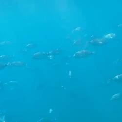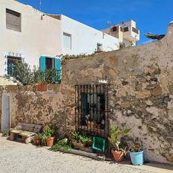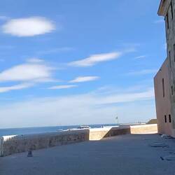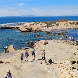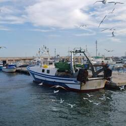 Heute fahren wir vor dem Frühstück weg weil Achim hofft einen Platz am Hafen von Santa Pola zu bekommen, denn es steht ein Ausflug zur Insel Tabarca auf dem Programm. Leider gibt es für unsere Größe nichts, das ist nicht schlimm denn wir kennen vom Frühjahr den großen Parkplatz auf dem Montags und Samstags der Markt stattfindet. Von dort bis zu den Anlegern ist es nicht weit, die Aussicht aber halt nicht so schön🤷. Kurz nach 12 Uhr sind wir dann am Hafen und kaufen die Tickets. Man hat die Qual der Wahl, mindestens 5 verschiedene Unternehmen bieten einen Transfer nach Tabarca an, sie überbieten sich lautstark um Kundschaft anzulocken. Eigentlich ist es gleichgültig wen man wählt, die Preise sind gleich nur die Schiffe sehen verschieden aus. Um 13 Uhr legen wir ab und sind nach ca. 20 Minuten da. In den zwei Kufen des Schiffs sind Fenster unter Wasser eingebaut so dass man vor und im Hafen von Tabarca die Fische im glasklaren Wasser beobachten kann.