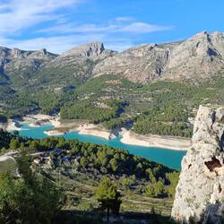 Wir erreichen Guadalest gegen 14 Uhr und parken auf dem gemeindeeigenen Stellplatz unterhalb der Stadt ein. Von hier aus kann man Teile des Stausee sehen durch den der Rio Guadalest fließt. Der See ist nur noch ein Schatten dessen was er mal war, momentan hat er noch etwa 15 % seines ehemaligen Fassungsvermögens. Wir wandern hoch in das Dorf, von dort aus hat man eine bessere Sicht.