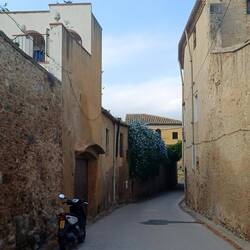 Aus Wikipedia: ..ist ein mittelalterliches Städtchen, ...ehemalige Hauptstadt der Grafschaft Empuries. Wahrzeichen ist die gotische Basilika Santa Maria....