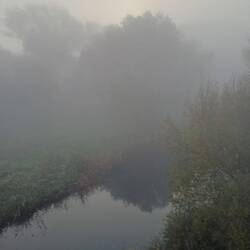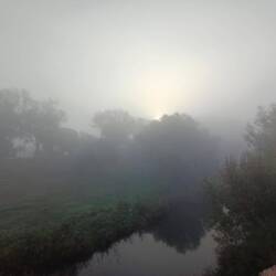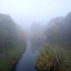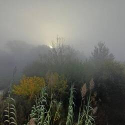 Auch hier wird es nun Herbst, und so erwachen wir an unserem letzten Tag in Spanien an einem nebligen Fluss, aber mit der Verheißung auf blauen Himmel und Sonne.