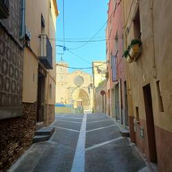Aus Wikipedia: ..ist ein mittelalterliches Städtchen, ...ehemalige Hauptstadt der Grafschaft Empuries. Wahrzeichen ist die gotische Basilika Santa Maria....
