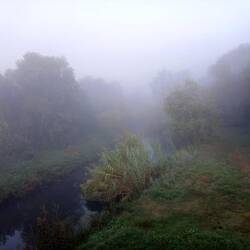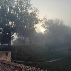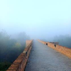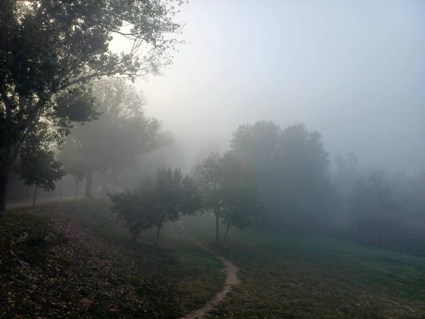 Auch hier wird es nun Herbst, und so erwachen wir an unserem letzten Tag in Spanien an einem nebligen Fluss, aber mit der Verheißung auf blauen Himmel und Sonne.