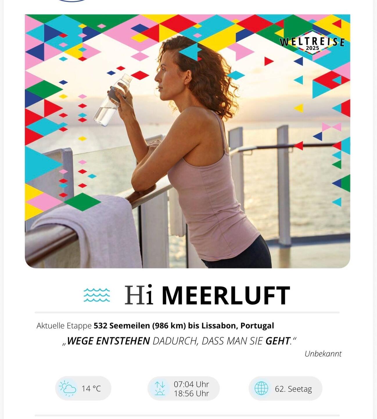 Am Abend wartet dann ein ganz anderer Rhythmus auf uns. Wayne Morris bringt die Bühne zum Strahlen und sorgt mit seiner Energie dafür, dass niemand lange still sitzen bleibt. Die Stimmung ist lebendig, fast ansteckend, und wir lassen uns einfach mitreißen. So endet unser Seetag mit einem schwungvollen Abschluss.