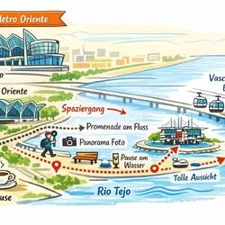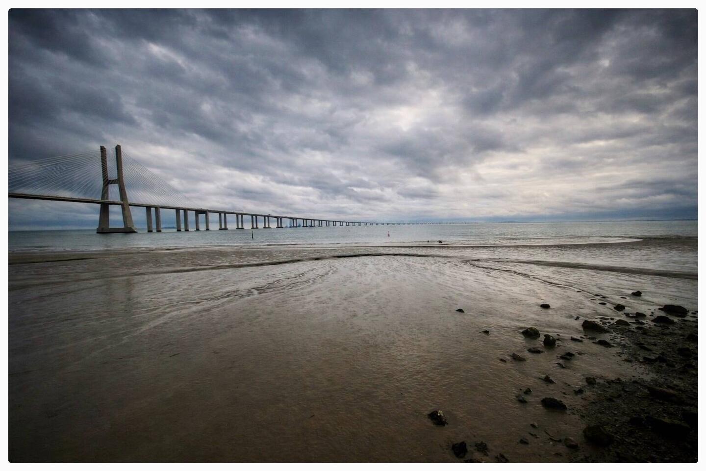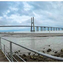 Mit der Metro fahren wir hinaus zum Parque das Nações. Unser erstes Ziel ist die Ponte Vasco da Gama. Weit spannt sie sich über den Tejo und wirkt selbst bei diesem Wetter beeindruckend. Die grauen Wolken und das Wasser verschmelzen fast miteinander – und genau das hat irgendwie seinen eigenen Reiz.
