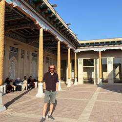 Amir Timur (aka Tamerlane), was a ruthless strategist, who commanded the fourth largest empire in history, from modern-day Turkey to parts of China. Samarkand was the capital city he built. He loved chess (Dan bought a magnetic chess board in his honour), and was buried with his spiritual teacher in Gur-e-Amir, the ‘tomb of the emir’. This mausoleum is said to have inspired the Taj Mahal. The city was built up a couple of generations later (by philosopher king Ulugbek) as a centre for culture and learning, and his madrasa survives in the Registan, Samarkand's iconic blue square.