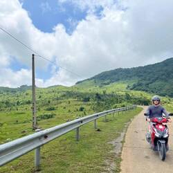 We started with a cruise through Da Nang, marvelling at the massive development and infrastructure—the hotels and Miami-style beach strip were NOT here during Chelsea's trip eight years ago! This was the most urban and busiest part of the ride, just to throw Dan in the deep end on the chaotic Vietnamese highway 🙃