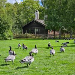 In Stockholm gibt es ein Freilichtmuseum, ähnlich dem Hessenpark, nur mit viel mehr Häusern. Alle aus verschiedenen Epochen und aus ganz Schweden. Weil Samstag ist, haben viele der Häuser auch geöffnet und der Park ist mit Leben gefüllt, in Form von authentisch gekleideten Menschen, die viele Fragen beantworten und einem alles zeigen. Bei einer Gruppe Renter habe ich aus Baumrinde Schnüre geflochten und wir haben die besten Zimtschnecken der Reise gegessen 😋