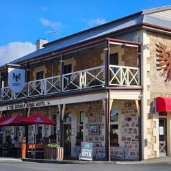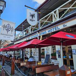 Zumindest wenn man einem deutschen Restaurant in Australien glaubt. Hahndorf wurde 1839 von deutschen Einwanderern gegründet, benannt nach dem Kapitän des Schiffs von damals. Hier gibt es immernoch einige deutsche Familien, die auch noch deutsch sprechen können (habe nur eine Person getroffen). Der Glühwein und das Bier waren super, die Brezel katastrophal und sonst ist "deutsches" Essen quasi bayerisches fleischlastiges Essen in allen deutschen Restaurants 😂 der Kartoffelpuffer war zwar drei Kugeln, aber hat als australische Interpretation echt gut geschmeckt und es ist ein schönes Dorf 😊Læs mere