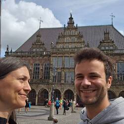 Bremen mit seinem Schnoor-Viertel, der Böttcher-Straße und dem Marktplatz, der von beeindruckenden Gebäuden gesäumt ist, gefällt uns sehr gut 😊. Jonathan isst ein Fischbrötchen, ich lieber Kuchen 🍰