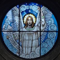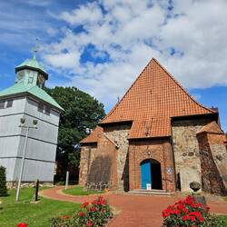 In der schönen Kirche hängen Segelschiffmodelle von der Decke und die SitzbänkeRead more