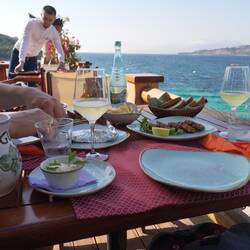 Endlich haben wir Theresa und Inaldi wieder gefunden 😁 Jetzt verbringen wir noch ein paar Tage zusammen am Meer. Der erste Tag zusammen war schon mal total entspannt mit Bruschetta alla Albania,Leggi altro