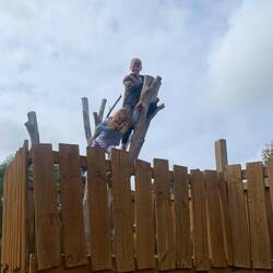 Walked the kitties through a massive wonderful playground and then around the ninja course with warped wall and all.