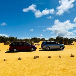 Absolutely remarkable rock formations rising out of the yellow dessert pebble sand south of Jurien Bay. We had fun both walking and driving through this special place.